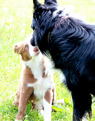 Lime fastnade i skostället var det endast Goy av alla valpar som kröp alldeles intill Lime medan hon satt fast och puttade på henne med nosen. Han kröp även alldeles tätt intill henne efter vi hade fått lös henne. När jag höll henne i min famn kom Goy och kröp upp tätt intill henne... :)